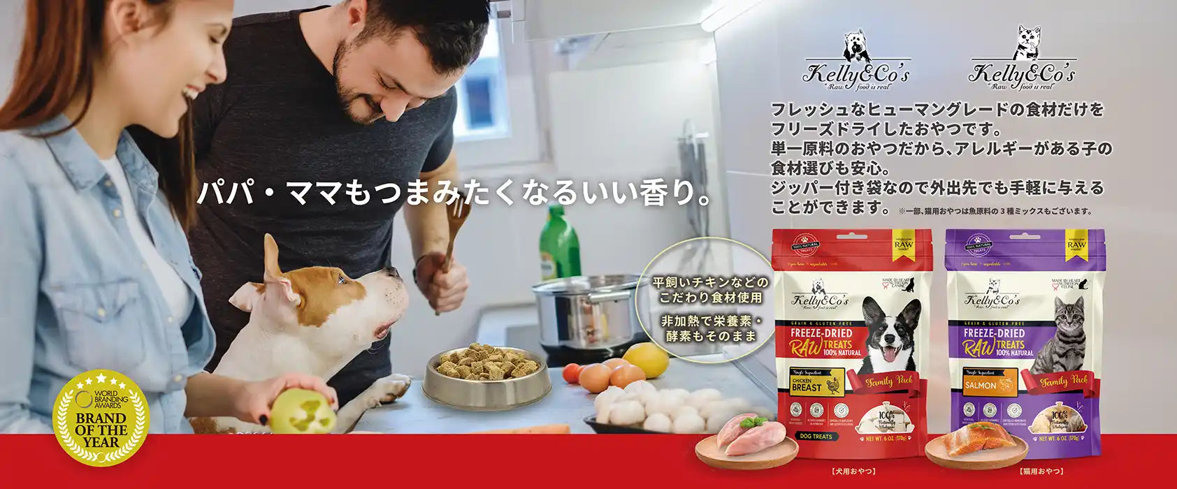 原料となる生肉・生魚をそのままフリーズドライにした素材100%の犬・猫用おやつ。フリーズドライ製法により香り・味・栄養に劣化がなく、生食材を手軽に味わえます。