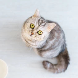 おやつは、愛猫の1日の摂取カロリーの10%を超えないようにしてください。おやつを与えている間は、必ず愛猫のそばで見守ってください。